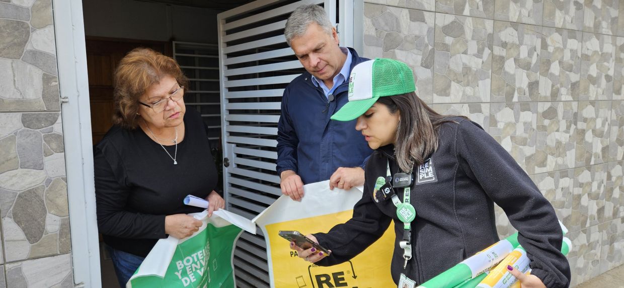 Esto forma parte de la implementación del convenio de colaboración entre la Municipalidad de Antofagasta y el sistema colectivo de gestión de envases y embalajes ReSimple. Durante 45 días equipos de Resimple realizará la entrega en toda la comuna de kits consiste en un afiche o volante informativo donde encontrará información sobre el detalle de residuos a reciclar en el hogar, cómo reciclarlos, días de recolección y las zonas abordadas para este proceso. Junto con el informativo se entrega un saco de color amarillo y un saco de color verde. El alcalde de Antofagasta, Sacha Razmilic, valoró este avance dado que "Antofagasta paga su deuda. Llevábamos años en que nuestra ciudad era la que menos reciclaba, pero ahora esto empezará a cambiar". Mientras que la líder de Asuntos Públicos de Resimple, Estefanía Carvajal, destacó el compromiso y rol de facilitador de la Municipalidad de Antofagasta para que la capital regional empiece a reciclar y dar cumplimiento de la Ley REP. | La vecina Griselda Cuello que recibió un kit en su hogar, contó que en el sector de Ferro Baquedano reciclaban, pero ahora este sistema permite organizarse de mejor forma y facilita el hecho de que el retiro sea desde el hogar una vez a la semana.