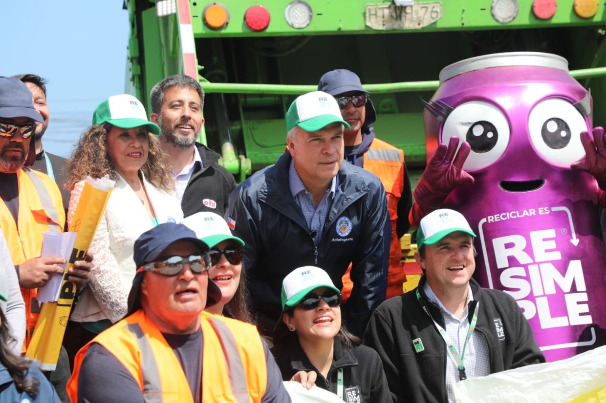 Esto materializa el convenio entre el municipio y ReSimple, que busca pasar de la comuna que menos recicla a una que mayor lo hace en el país, además de cumplir con la implementación de la Ley REP, promover una economía circular y más sostenible en el país. El alcalde de Antofagasta, Sacha Razmilic, valoró la puesta en marcha de este convenio "que nace al alero de la Ley REP, donde los productores financian este sistema de recolección de material a reciclar para su recuperación". Agregó que la comunidad, por primera vez recicla en forma organizada, por medio de este servicio de "dos camiones, uno que se llevará lo que es vidrio y otro que llevará plásticos, latas, cartones" e invitó a la comunidad a descargar en sus celulares la aplicación (app) "ReSimple Reciclaje", donde se podrá informar del día en la semana en que el camión visitará su hogar, dado que cuenta con un sistema 100% geolocalizado, es decir, podrá saber en tiempo real la ubicación del camión que pasará por su sector. | Mientras que el gerente general de ReSimple, Javier Fuentes, realizó una positiva evaluación de la respuesta de la comunidad, dado que "vamos a pasar por más de 100 mil viviendas, en primera instancia, con seis camiones, un 70% de esto con gestores privados y el restante 30% con recicladores de base, lo que nos pone muy orgullosos de integrar a toda la comunidad".
