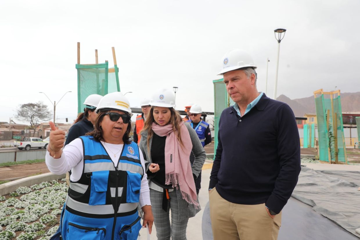 "Estamos muy contentos con los avances. Esta plaza está quedando realmente hermosa, con una inversión que supera los 2 mil millones de pesos, financiada gracias al convenio de aporte del litio. Este será el verdadero ingreso a Antofagasta, un espacio recuperando para las familias y los niños, con muros de escalada, canchas de básquetbol 3x3, zona de calistenia, áreas sombreadas, flores y juegos de primer nivel", señaló el alcalde Sacha Razmilic, durante una visita inspectiva a las obras".