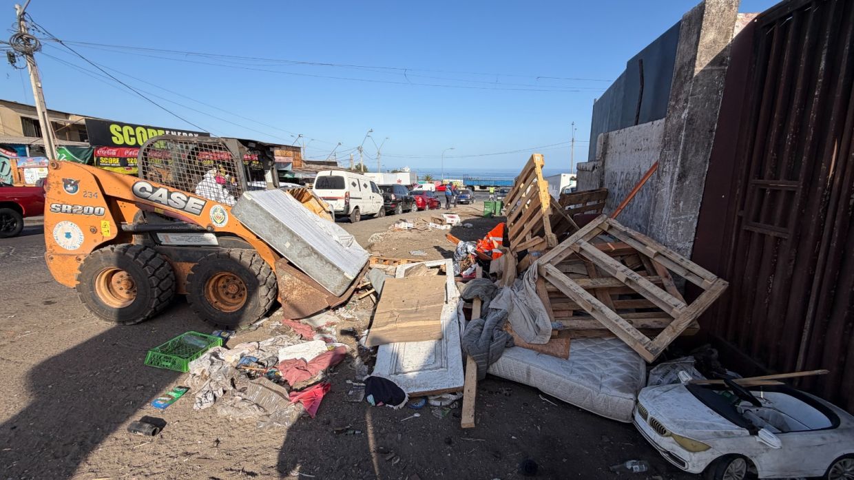 Tal como ocurre semana a semana y día a día, personal de la Dirección de Aseo de la Municipalidad de Antofagasta desplegó sus equipos en los alrededores de La Vega Central, para erradicar la presencia de rucos y retiro de basura, respectivamente, lo que ha transformado este espacio de la ciudad en un punto crítico ante la falta de medidas en la disposición de residuos por parte de los comerciantes y camiones del sector.