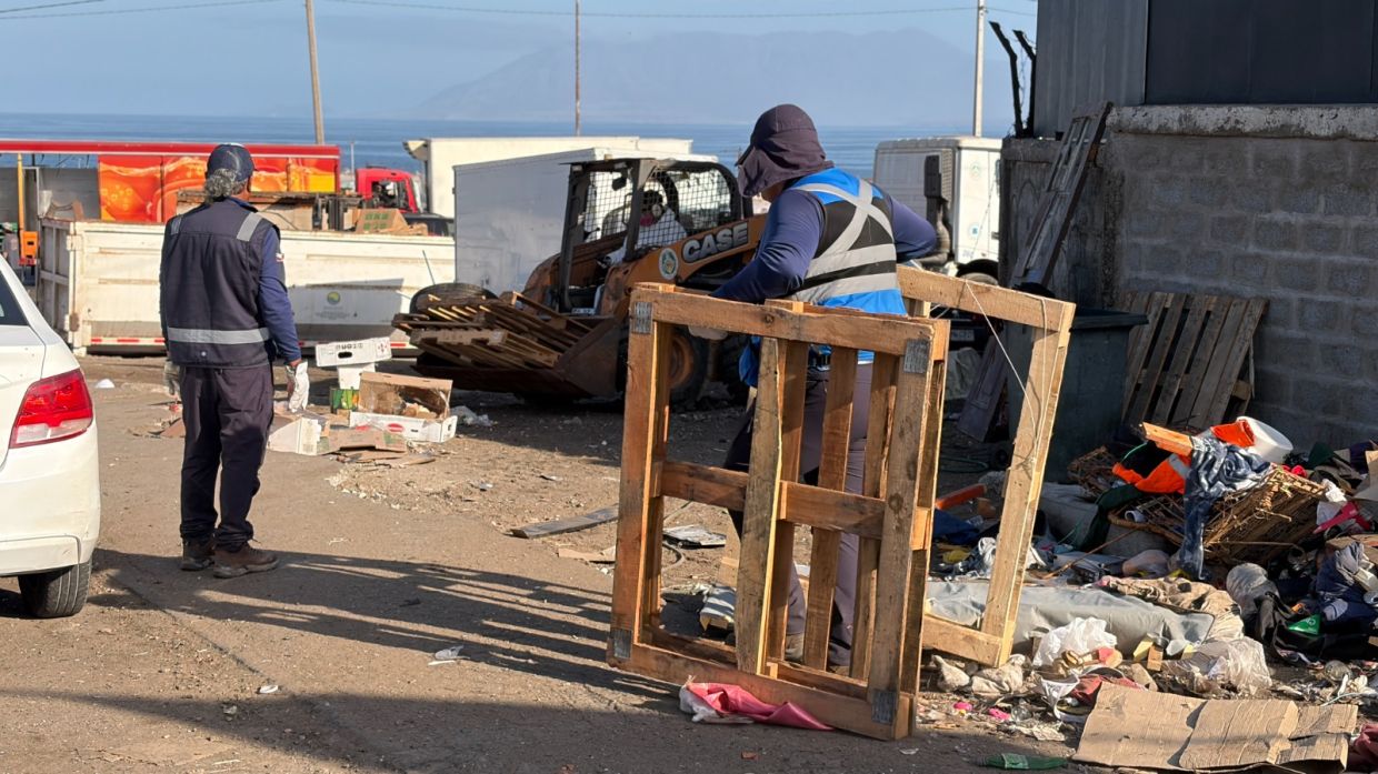 Esta vez, además de sacar basura que incluyó decenas de cajas de huevos, también fueron erradicados dos rucos que estaban en los alrededores del centro comercial. La presidenta de la Junta Vecinal Norte 38, Yasna Morales, lamentó la imagen de las calles todas las tardes, cuando "ellos terminan de trabajar, con la gente en situación de calle mandan a botar pallets en las inmediaciones. Esto es recurrente". A ello sumó que "los residuos quedan totalmente a la deriva en la vía pública, si no fuera por la municipalidad y el camión que pasa en horas de la tarde en forma extra, esto de verdad estaría convertido en un microbasural". | El coordinador de Aseo del municipio, Edgardo Naveas, dijo que "este es un punto de interés clave que tiene la municipalidad como Dirección de Aseo. Estamos alrededor de este comercio, que es un comercio poco amigable. No es un buen vecino con la comunidad".