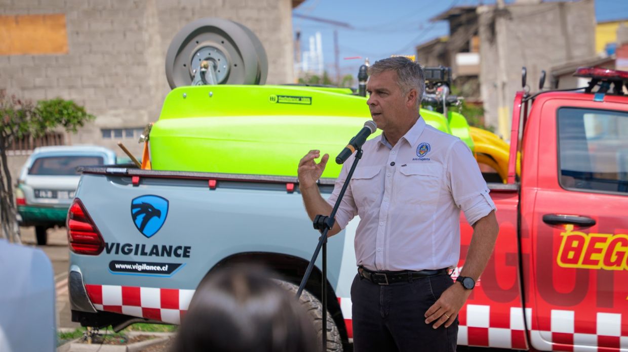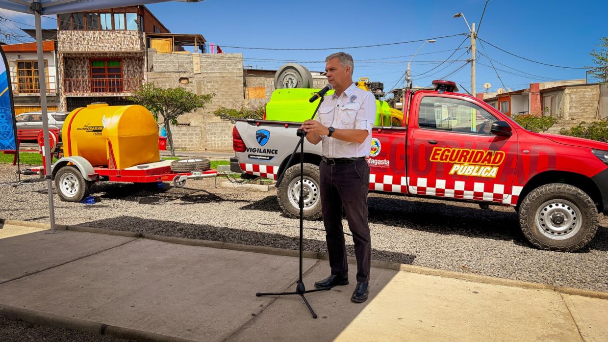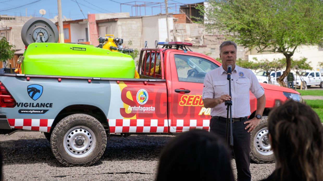 El alcalde de Antofagasta, Sacha Razmilic, recalcó que "poco a poco hemos ido avanzando en soluciones más eficaces", donde el trabajo de las direcciones de Seguridad Pública y Gestión de Riesgos se ve fortalecido por las labores del servicio privado de vigilancia 24/7 y esta nueva unidad de respuesta ante focos de incendio. Si bien este dispositivo no reemplaza a Bomberos, es clave para una respuesta en el momento más crítico, es decir, los primeros minutos donde se define el control o la propagación del incendio. El director de Seguridad Pública del municipio, Gonzalo Castro, detalló que "estamos colocando a disposición de la comunidad un equipo de primera respuesta que complementa el patrullaje preventivo en el sector del ex vertedero La Chimba (...) Este es un dispositivo que tiene la capacidad de responder a las quemas, a los incendios con cuatro operadores que están debidamente capacitados y disponibilidad 24/7". |