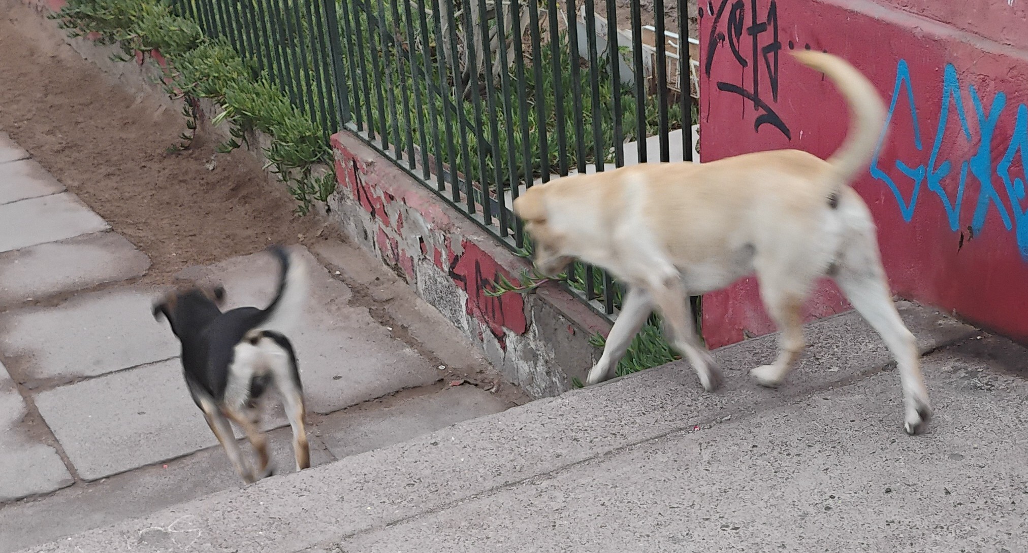 3 perros en la calle Pezoa Veliz cerca de calle Dalhmar atacan a las personas que van pasando. Hoy me tocó a mi. A mí hijo lo mordieron hace 1 mes. Favor tomar acciones.