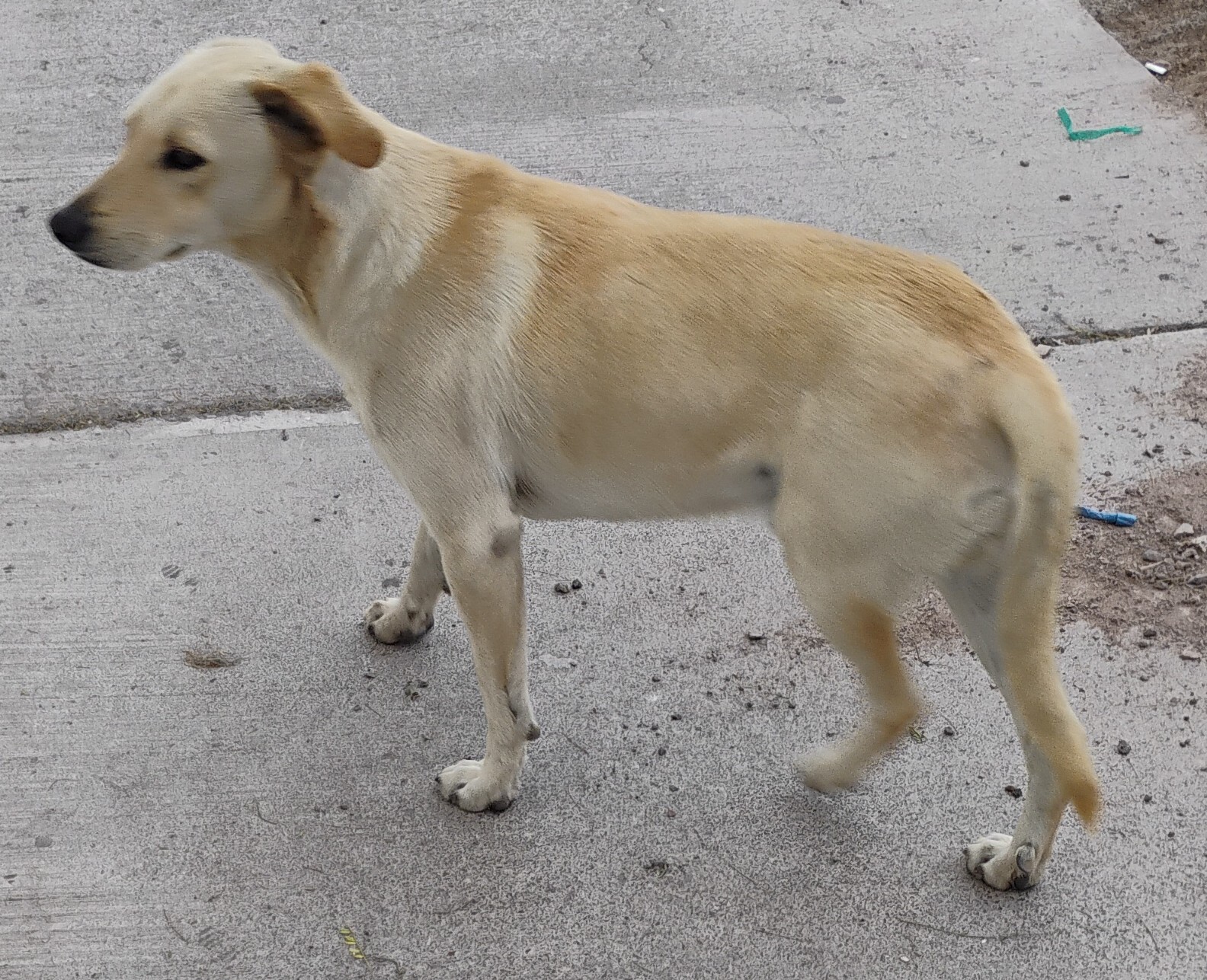 Se encuentra perrita en vía pública nos siguió desde Uribe hasta nuestro hogar Caracoles 3235 A Villa Parinacota por lo cual en estos momentos no podemos tenerla ya que no tenemos espacio.