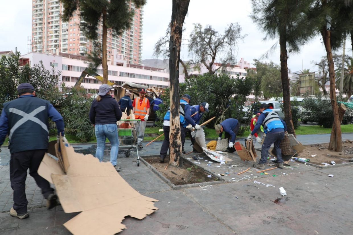 Un total de siete rucos fueron retirados, dos veces en menos de 24 horas, por personal de la Municipalidad de Antofagasta con el apoyo de Carabineros desde el bandejón central ubicado frente al sector del mall.