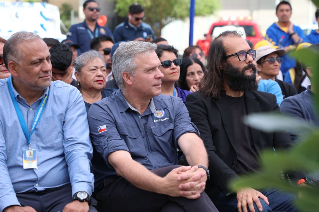 El alcalde de Antofagasta, Sacha Razmilic, destacó la actividad organizada por la Dirección de Gestión del Riesgo de Desastres, considerando que hasta hace un tiempo esta entidad carecía de personal y actualmente cuenta con siete funcionarios, equipamiento como drone, vehículos para atender emergencias.