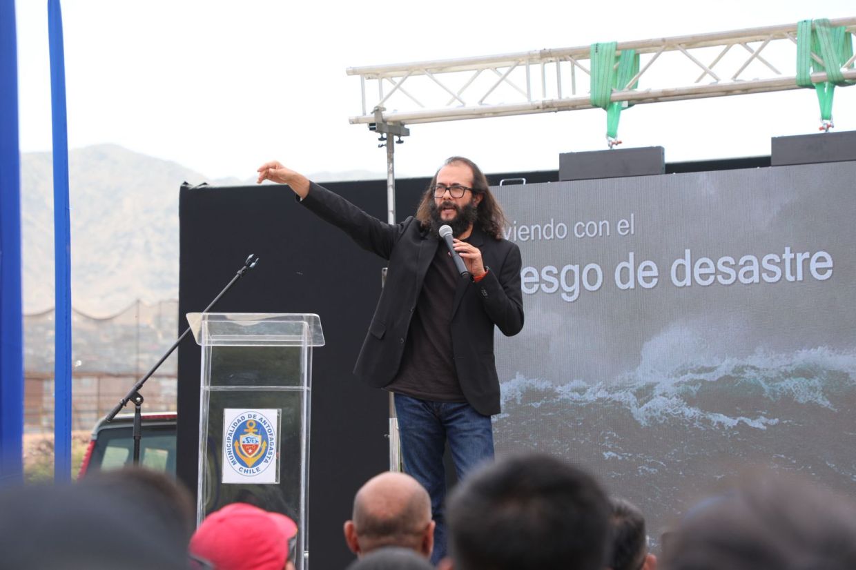 Todo esto, fundamentó el jefe comunal, "ha sido puesto a prueba a lo menos en dos oportunidades (este año), donde hemos activado los Cogrid comunales, primero para el corte de energía eléctrica y agua potable y luego para la alerta de tsunami". Agregó que "estamos probando nuestras capacidades y demostrando lo que podemos hacer. Esta Expo viene a ser parte de esos esfuerzos donde le informamos a la comunidad que debemos hacer", donde es clave la educación y contar con un sistema preparado. Mientras que el expositor y especialista en el área, Marcelo Lagos, destacó y agradeció la iniciativa e invitación del municipio, "entendiendo de que estos temas atraviesan la realidad y cuerpos que habitan en zonas de riesgo y Chile no es la excepción y Antofagasta no es inmune a la posibilidad de desastres", recordando el aluvión de 1991 y permanente amenaza de terremoto y tsunami. | "Antofagasta sienta un precedente porque nos invita a reflexionar, conversar, escucharnos y poner sobre la mesa los temas que condicionan el desarrollo humano y el riesgo de desastre es uno de ellos. No queremos ser sorprendidos, queremos anticiparnos, tener una mirada prospectiva y claramente Antofagasta está en esa ruta", agregó Marcelo Lagos.