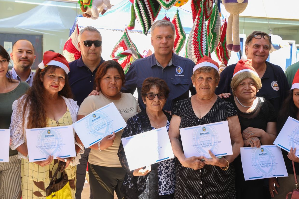 Un grupo de 22 mujeres fueron reconocidas por el trabajo que hay detrás del árbol de Navidad ubicado en el hall de la Municipalidad de Antofagasta y elaborado con la técnica artística japonesa conocida como amigurumi, ícono de esfuerzo y superación, y que como dijo el padre Felipe Berríos, día a día luchan contra la delincuencia, postergación y crimen organizado.