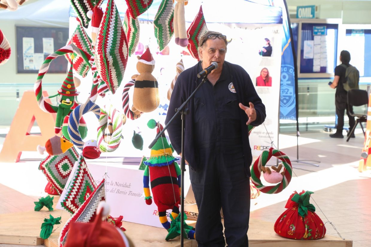 El jefe comunal, Sacha Razmilic, destacó que "éste es un regalo, una contribución que hacen las vecinas del Barrio Transitorio Luz Divina, junto con la Fundación Recrea y el padre Felipe Berríos", un aporte de "personas humildes, gente de esfuerzo, que colaboran unas con otras". El padre Felipe Berríos agradeció a la Municipalidad de Antofagasta, tanto al alcalde Razmilic como al equipo de personas que se encargó en montar y agasajar el pino navideño, y sobre todo "a todas las mujeres (que elaboraron estos adornos), sencillas, humildes, que quieren regalar algo significativo, una manera de darle un significado más profundo a la Navidad". | Una de las protagonistas y que aportó sus creaciones a la mencionada ornamentación, Silvia Bravo, del Barrio Transitorio Luz Divina, dijo que era "hermoso y una terapia", que a sus 74 años, ha sido un aliciente el conocer y acercarse a esta experiencia, técnica que aprendió hace 6 años, por lo que ahora "hago monos al lote".