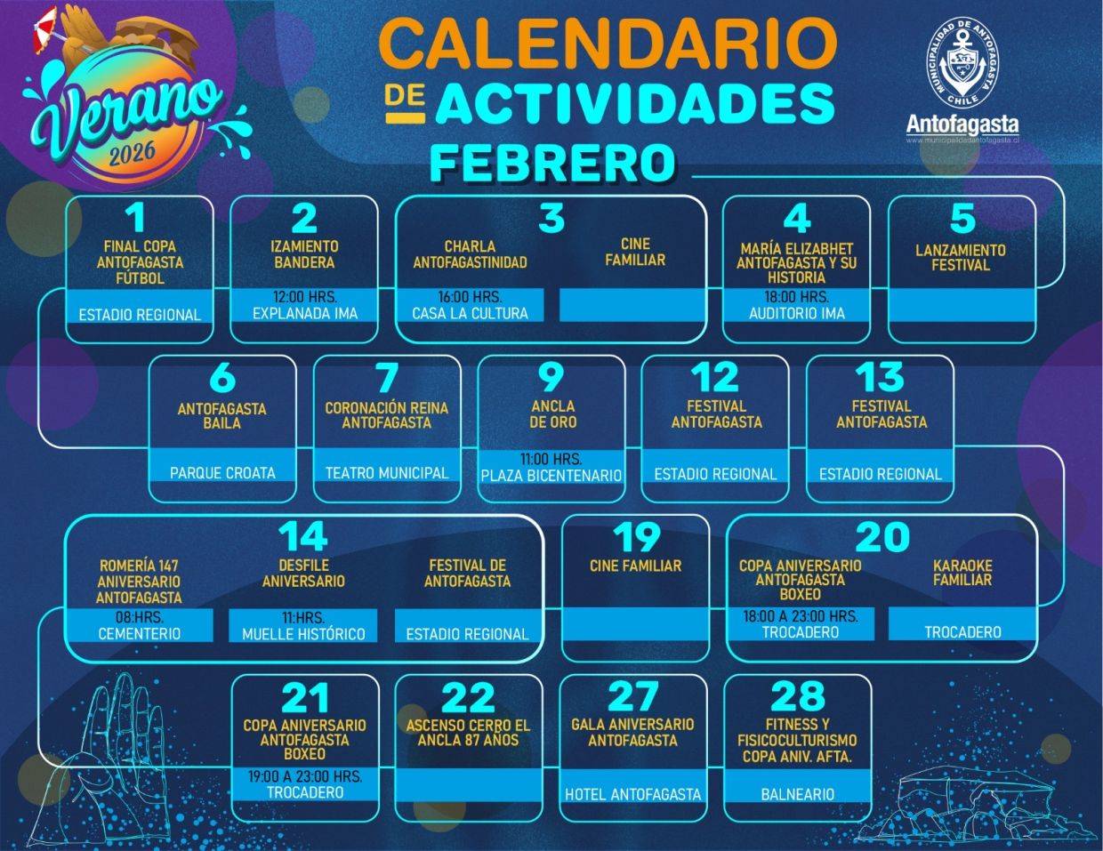 MUNICIPALIDAD DE ANTOFAGASTA PRESENTA NUTRIDO CALENDARIO DE ACTIVIDADES DEL VERANO 2026
