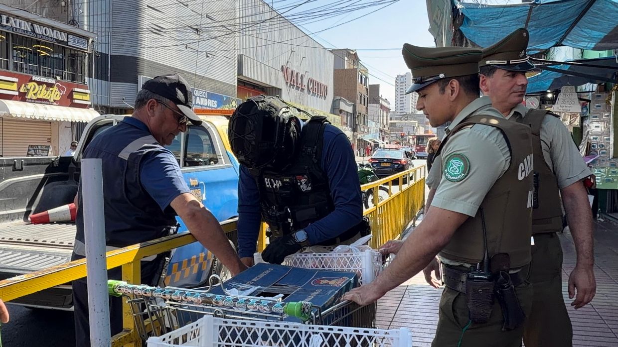 MUNICIPIO Y CARABINEROS REALIZAN OPERATIVO CONJUNTO CONTRA EL COMERCIO AMBULANTE EN EL CENTRO