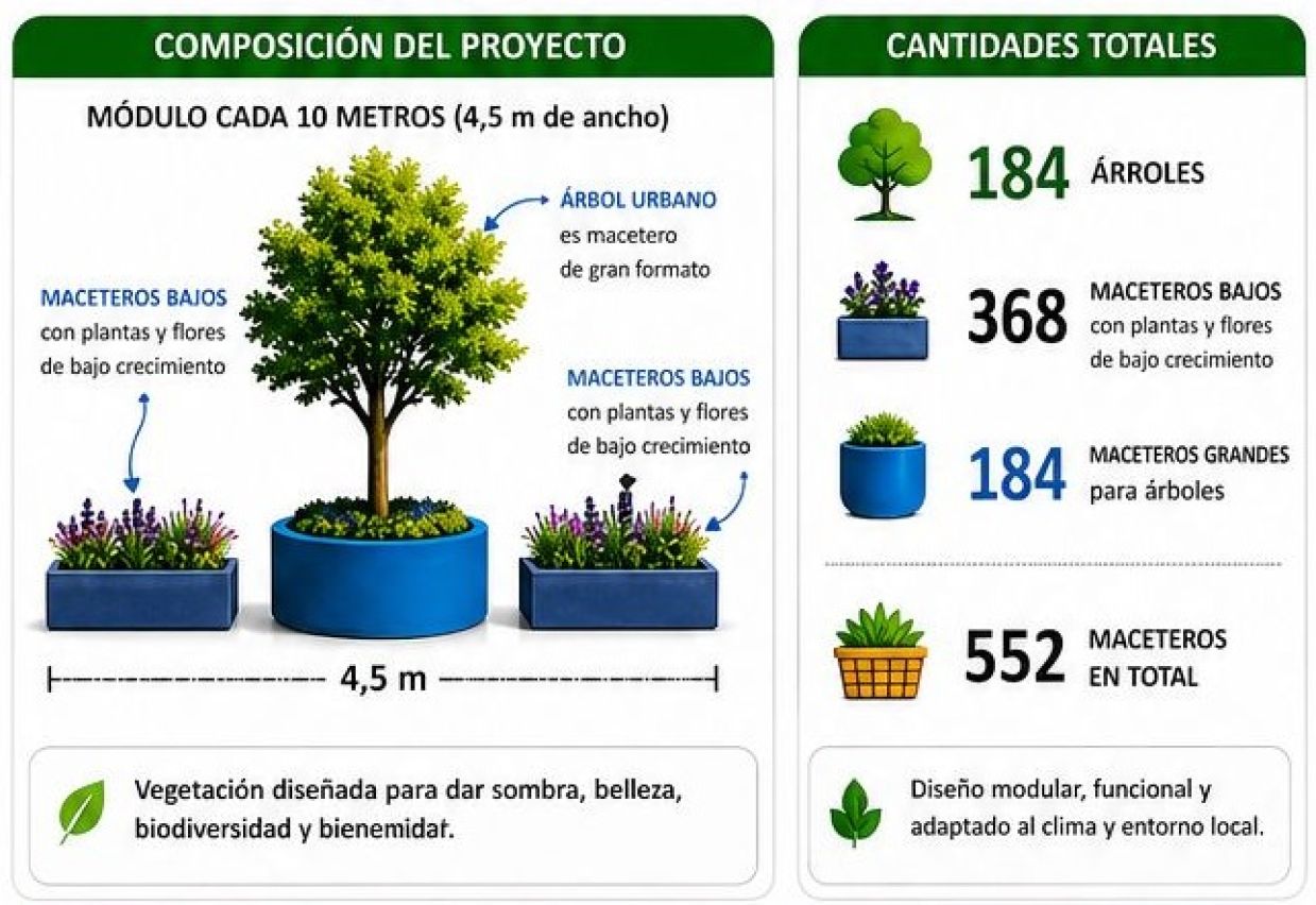 "184 árboles más 368 macetas con plantas endémicas que permitirá hermosear este sector. Los trabajos empezarán la próxima semana, así que verán un cambio ostensible en el breve plazo", agregó el director de Operaciones.